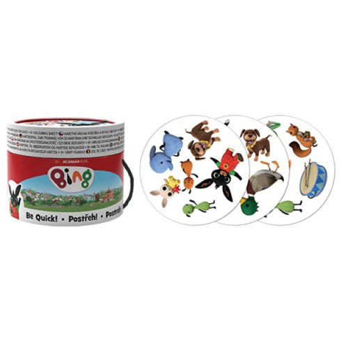Kartová hra Bing na postreh a rýchle reflexy obsahuje 30 farebných kartičiek na hranie a omaľovánku v tube s obľúbeným rozprávkovým motívom. Súčasťou balenia sú aj pravidlá, ako si hru zahrať.