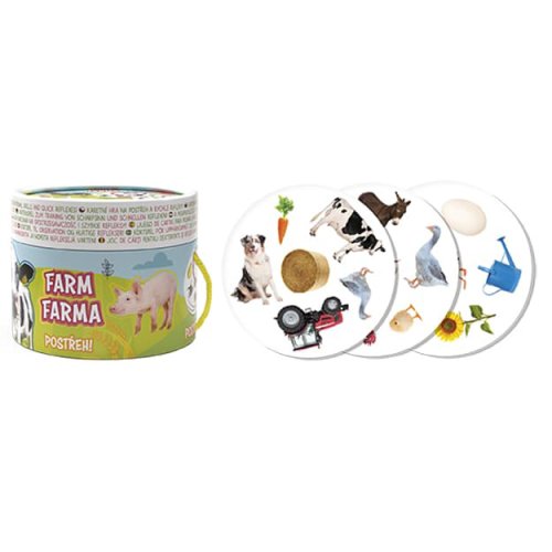 Kartová hra FARMA na postreh a rýchle reflexy obsahuje 30 farebných kartičiek na hranie a omaľovánku v tube s obľúbeným rozprávkovým motívom. Súčasťou balenia sú aj pravidlá, ako si hru zahrať.