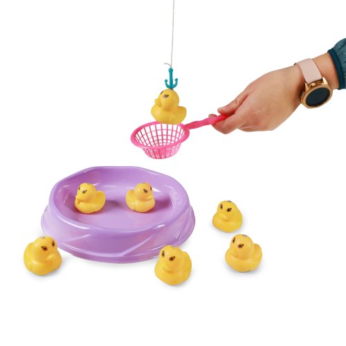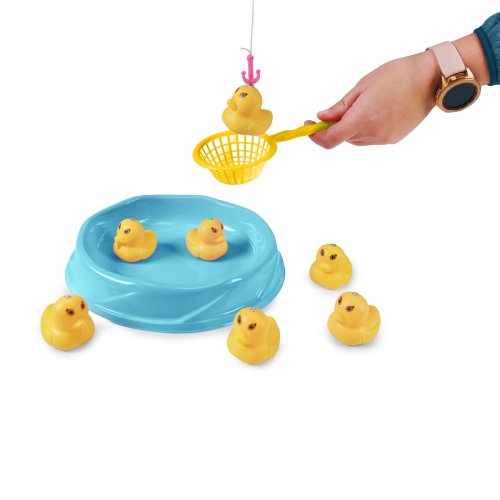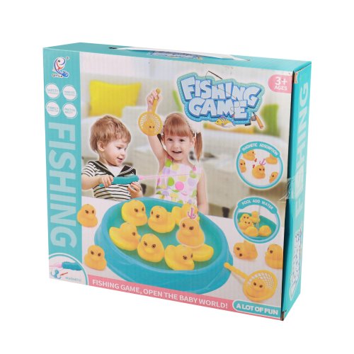 Zábavná hra pre malých rybárov! Tento praktický set obsahuje 1 prút s háčikom, plastové mini jazierko a 6 kačičiek s magnetkami. Nádobu naplň vodou, vlož kačičky do vody, priprav si prút a môžeš začať! Vďaka prútu opatreným magnetom, pre teba nebude lovenie kačičiek žiadny problém!