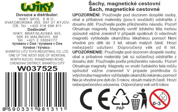 Hra šach magnetické cestovné. Rozmery puzdra 10x18,5 cm. Plechové puzdro slúži po otvorení ako šachovnica. Figúrky sú magnetické.