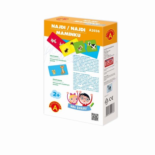 Náučné hranie pre malých objaviteľov. Krabička "HRA ŠKOLOU® - NÁJDI MAMIČKU", pre deti už od 2 rokov, je plná zvieratiek. Pomocou dvojdielnych veľkých kartičiek sa deti učia pomenovať zvieratká a hľadajú mláďatká k ich mamičkám. Tvar spojenia im napovie, či naozaj našli správnu dvojicu.