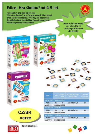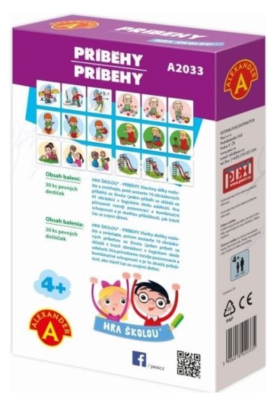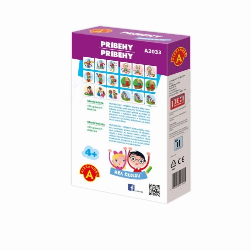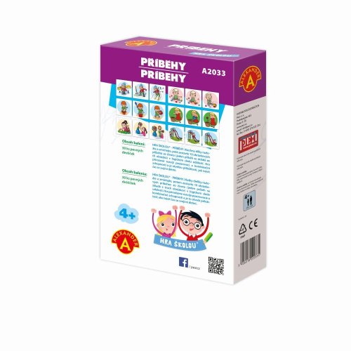 Ocenenie Hračka roku 2018-3.miesto. Náučná hra od 4 rokov, pomocou ktorej sa deti učia spoznať časové postupnosti v príbehoch, logicky uvažovať a zdokonaľujú schopnosť hovoriť a popisovať. Hra rozvíja pozorovacie schopnosti, trénuje postreh a zdokonaľuje reč. Úlohou je zložiť doštičky s príbehmi, tak aby na seba postupne nadväzovali a vznikol celý logický príbeh v správnej časovej postupnosti. Pri skladaní príbehov, sa deti rozprávajú s rodičmi a popisujú to, čo vidia na obrázkoch. To ich vedie k rozširovaniu slovnej zásoby a zlepšeniu vyjadrovania a tiež, za pomoci rodičov k zlepšeniu výslovnosti. BENEFITY:- učí logickú časovú postupnosť- rozvíja slovnú zásobu- zlepšuje vyjadrovanie- rozvíja všímavosť Obsah balenia: 30 kusov obrázkových doštičiek s obrázkami (z pevného kartónu), český a slovenský návod s príbehmi