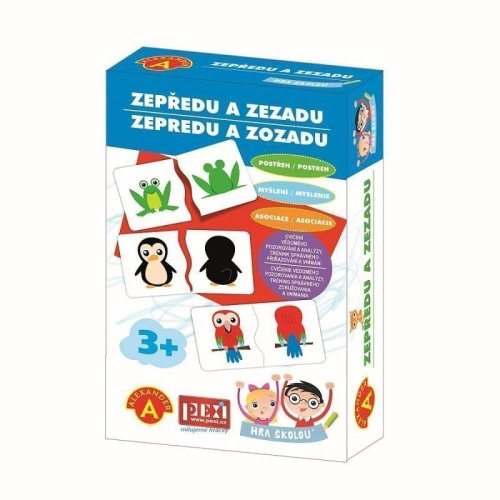 "Náučné hranie pre malých zvedavcov od 3 do 6 rokov. Za pomoci zvieratiek spoznávajú a upevňujú rozlišovanie objektov z prednej a zadnej strany. Každý dielik z dvojice farebných obrázkov má špeciálne tvarované okraje, ktoré deťom pri skladaní pomáhajú overiť si správnosť nájdeného riešenia. Séria Hra školou® bola ocenená 3 miestom."