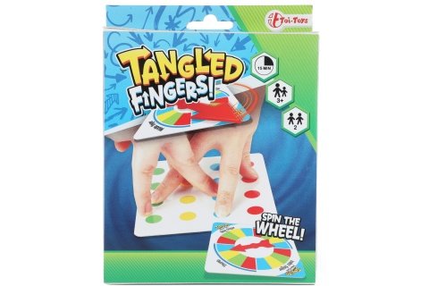 Spoločenská hra zapletené prsty v malom cestovnom prevedení. Roztočte koleso, položte prsty a nezamotajte sa. Hra určená pre 2 hráčov. Dĺžka hry cca 15 minút. Balené v krabičke. Rozmery balenia 17x13x2 cm. Vek 3+
