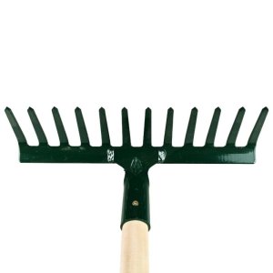 • kvalitné kovové hrable s pevnou násadou