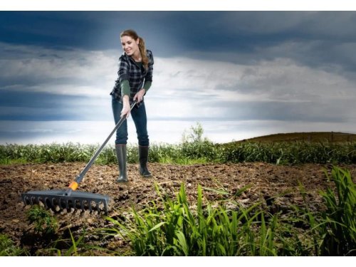 Univerzálne hrable sú vhodné na hrabanie trávy, buriny, machu, na spracovanie pôdy a na prípravu záhonov na siatie. Majú 12 zubov z pevného kompozitného materiálu FiberComp. Systém QuikFit umožňuje spojenie rôzneho záhradného náradia s jedinou násadou. Šírka: 410 mm, dĺžka: 152 mm, hmotnosť: 260 g.