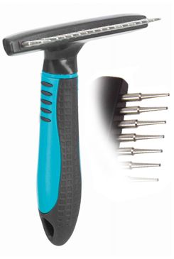 Hrablo s protišmykovou rukoväťou a zaoblenými zubami pre jemnú starostlivosť o srsť. Protišmyková rukoväť padne krásne do ruky a nepretáča sa a česanie srsti, ktoré by sa malo vykonávať minimálne 1 x týždenne, Vám pôjde ľahko.