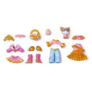 Taylor vždy dodáva svojim outfitom sladký a šik nádych. Jej štýl sa hodí pre každú príležitosť – či už venčí svojho psíka v parku na slniečku, ide nakupovať s kamarátkami alebo sa chystá na slávnostnú Golden Gala! V sete Taylor´s Golden Gala Deluxe nájdeš 3 rôzne outfity pre každú príležitosť. Môžeš ich medzi sebou ľubovoľne kombinovať a dopĺňať, aby vznikli originálne a špeciálne looky. Vďaka trom jedinečným výrazom Kookyloos, ktoré je možné zmeniť jediným kliknutím, môžeš navyše ľahko zladiť štýl aj s rôznym make-upom. 1 domáci maznáčik, 1 kabelka pre deti v tvare srdca.