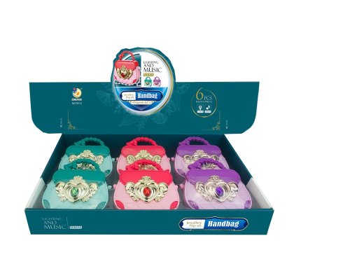 Plastová kabelka so svetelným a zvukovým efektom. Set obsahuje gumičku, sponku, hrebienok a ďalšie doplnky pre malé parádnice.