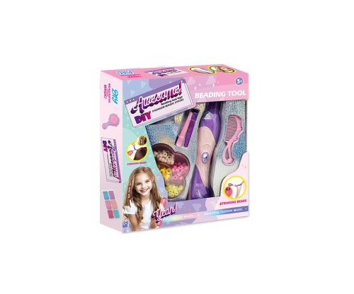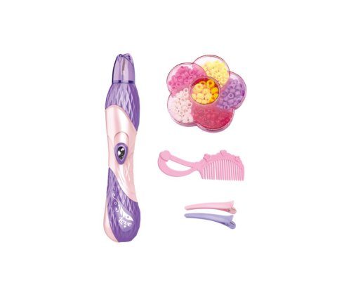 Hrací set na vlasy s korálkami je určený pre malé parádnice od 3 rokov, ktoré si rady tvoria jedinečné účesy a experimentujú s farebnými doplnkami. Tento kreatívny set umožňuje jednoduchú aplikáciu farebných korálikov do vlasov pomocou špeciálneho aplikátora, ktorý je ergonomicky navrhnutý a ľahko sa ovláda. Aplikátor je kombináciou ružovej a fialovej farby so zaujímavým vzorom, čo z neho robí atraktívny nástroj, ktorý deti rady používajú.
