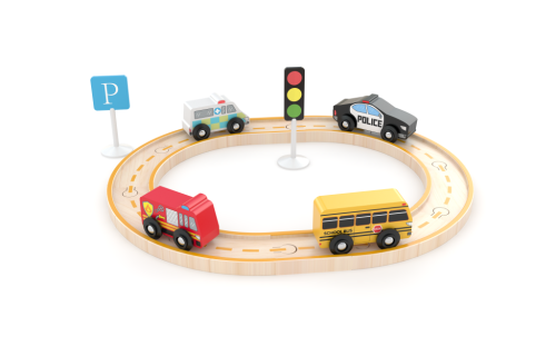 J`adore je rad vzdelávacích hračiek pre najmenších, vyrobených z ekologicky udržateľného dreva, bez chemikálií. Produkt stimuluje detskú fantáziu. Set je vhodný pre deti od 18 mesiacov. Set obsahuje koľaje a vozidlá z mestskej premávky. Koľaje sú široké 4 cm.