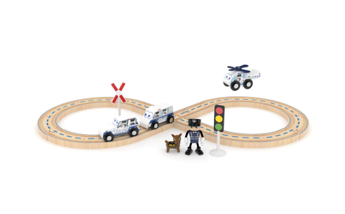 J`adore je rad vzdelávacích hračiek pre najmenších, vyrobených z ekologicky udržateľného dreva, bez chemikálií. Produkt stimuluje detskú fantáziu. Set je vhodný pre deti od 3 rokov. Set obsahuje koľaje a 4 vozidlá v policajnom dizajne.