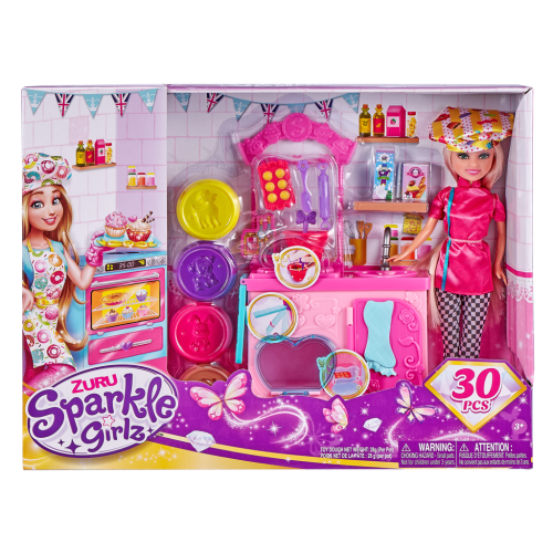 Táto sada bábika Sparkle Girlz s tematikou pečenia je ideálna pre všetky malé cukrárky, pekárky a milovníkov kuchárskych dobrodružstiev! Súčasťou sady je bábika Sparkle Girlz, ktorá je pripravená na pečenie a zábavu v kuchyni, a 30 doplnkov, ktoré zahŕňajú všetko potrebné na prípravu nielen sladkých pochúťok – od formičiek na pečenie, valčeka a ďalších pomôcok až po rôzne dekorácie. Deti si môžu vytvoriť vlastné recepty, hrať sa na malú pekárku a užívať si hodiny kreatívnej zábavy.