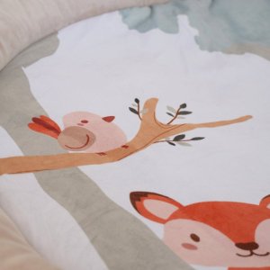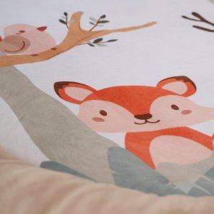 • hracia deka v jemnom dizajne s motívom lesa a roztomilých zvieratiek