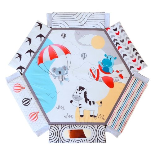 • hracia deka v jemnom dizajne , ktorú je možné počas chvíľky premeniť na bazénik (pomocou suchých zipsov)