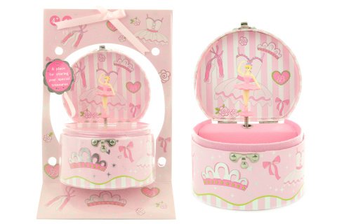 Hracia skrinka šperkovnice s baletkou. Vnútri špekovnice je zrkadlo a baletka, ktorá po natiahnutí kľúča tancuje a hrá. Veľkosť cca 12,5 x 8 x 11 cm. Rozmery balenia cca 18,5 x 26,5 x 11,5 cm. Vek 4+
