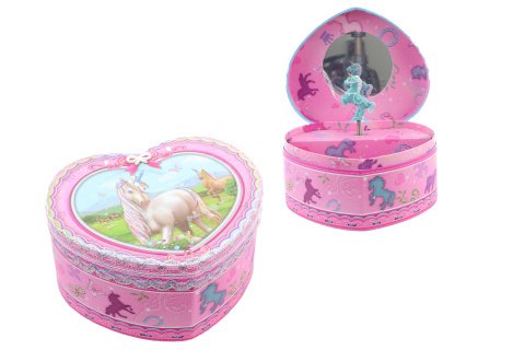 Hracia skrinka šperkovnica truhla. Vnútri špekovnice je zrkadlo a jednorožec, ktorý po natiahnutí kľúča tancuje a hrá. Veľkosť cca 15 x 13 x 7 cm. Balené v igelitovom sáčku. Výrobok nie je hračka.