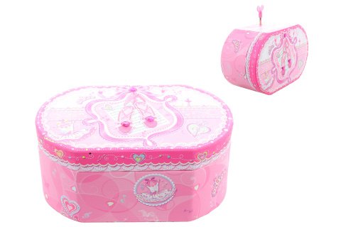 Hracia skrinka šperkovnica truhla. Vnútri špekovnice je zrkadlo a baletka, ktorá po natiahnutí kľúča tancuje a hrá. Veľkosť cca 17 x 11 x 8 cm. Balené v igelitovom sáčku. Výrobok nie je hračka.