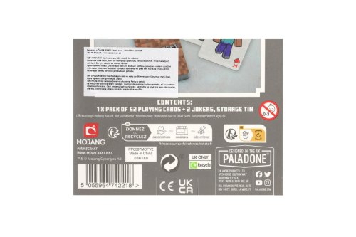Hracie karty Minecraft musí mať každý milovník populárnej počítačovej hry Minecraft. Vďaka skladnému baleniu si ich môžete vziať aj na výlet. Súprava obsahuje 54 kariet. Vhodné pre deti od 6 rokov.
