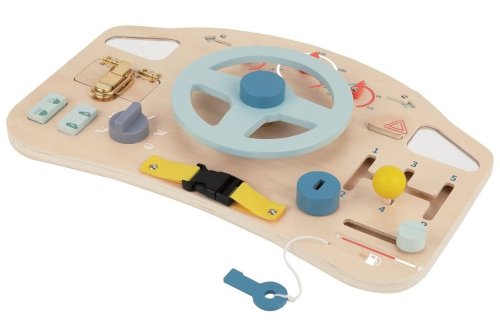 Motorická doska s volantom od značky 2Kids Toys dopraje vášmu najmladšiemu členovi rodiny zábavu na dlhú dobu. Dieťa na nej nájde zámky, vďaka ktorým si precvičí odomykanie a zamykanie . Okrem nich sa vyhrá s pásikmi a tlačidlami. Vyskúša si, ako funguje radenie, uchopí volant a vydá sa na imaginárnu jazdu.