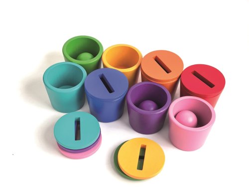 Deti sa učia najlepšie prostredníctvom hry. Úlohou je pomocou lyžice umiestniť guličky do správnych kalíškov podľa farieb a roztriediť mince. Kalíšky možno zakryť vršky s otvormi, do ktorých deti umiestňujú mince pomocou čínskych paličiek alebo pinzety . Pestrofarebné prevedenie motivuje deti k objavovaniu, zábave aj učeniu. Hračka posilňuje sústredenie, učí manipuláciu s predmetmi a rozvíja jemnú motoriku aj fantáziu.