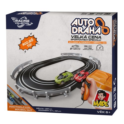 Autodráha Racing collection urobí radosť každému malému pretekárovi a nadšencovi do autíčok. Autíčka ovládame pomocou ovládača , kde si prispôsobujú pretekári rýchlosť. Stačí zostaviť trať a vyraziť. Oválová trať s prudkými zákrutami vyskúša šikovnosť malého vodiča v ovládaní autíčka. Balenie obsahuje 2 závodné autá, 2 ovládače s USB káblom pre externé napájanie . Celková dĺžka trate je 126 cm . Kto pôjde rýchlejšie, obíde koliesko ako prvé a vyhrá?