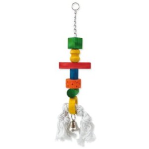 Závesná drevená hračka s povrazmi vhodná pre drobné a stredné exotické vtáctvo.