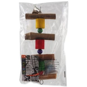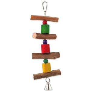 Závesná hračka pre vtáky. Vyrobené z topoľového dreva a železa.