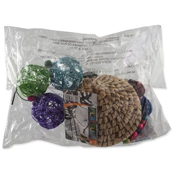 • Vyrobené z topoľového dreva, ratanu, bavlneného lana, orechových škrupín a železa.