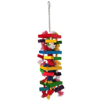 Hračka Bird Jewel závesná s povrazmi a drievkami farebná 54cm