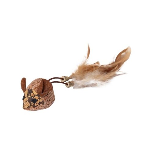 Hračka v tvare myšky je vyrobená z mäkkého úpletu, korku a juty. Pre väčšie vzrušenie z hry je doplnená pierkami pripevnenými na povrázkoch. Rôznorodé textúry a prírodné materiály stimulujú prirodzené lovecké inštinkty mačky a podnecujú ju k aktívnej hre. Hračka je vhodná pre mačky všetkých vekových kategórií. Rozmery (cca): 7 × 4 cm Materiál: mäkký úplet, juta, korok, perie Upozornenie: Hračka nie je určená deťom. Na použitie iba pod dohľadom. Hračku pravidelne kontrolujte av prípade poškodenia prestaňte používať.