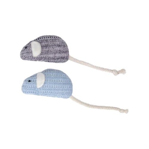 Dve hračky v tvare myšiek sú vyrobené z mäkkého úpletu, majú plyšovú výplň a pre ešte väčšie vzrušenie z hry dlhý chvostík zo špagátu. Použité materiály stimulujú prirodzené lovecké inštinkty mačky. Hračky sú vhodné pre samostatnú aj spoločnú, interaktívnu hru. Rozmery (cca): 4,5 × 8 cm Materiál: mäkký úplet výplň - plyš Farba: modrá, šedá Upozornenie: Hračka nie je určená deťom. Na použitie iba pod dohľadom. Hračku pravidelne kontrolujte av prípade poškodenia prestaňte používať.