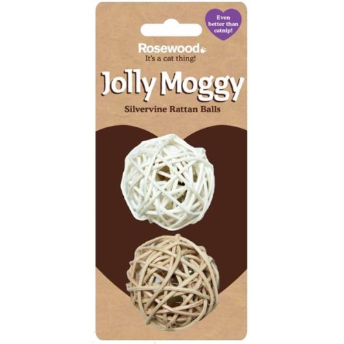 Loptičky Jolly Moggy Silvervine Balls sú vyrobené z ratanu a naplnené aktinídiou striebornou, bylinou, ktorá u mačiek vyvoláva podobné reakcie ako šanta mačacia alebo valeriána lekárska. Pre väčšie vzrušenie z hry je vo vnútri každej loptičky aj rolnička.