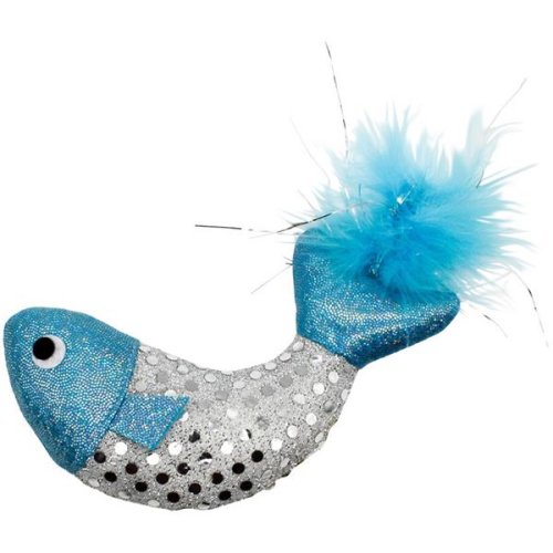 Potešte svoju mačku hračkou Catnip Fish z kolekcie Holly & Robin Winter Wonderland. Textilná rybka má telo posiate flitrami, trblietavú hlavu, na bokoch plandavé plutvičky a na chvoste chumáč prachového peria. Pre väčšie vzrušenie z hry je ryba vyložená šuštivou fóliou. Typ hračky: textilná, šustivá, trblietavá, páperová Rozmery (cca): 15 × 4 × 2 cm Hmotnosť (cca): 13 g Farba: modrá, strieborná Materiál: polyester, plast, perie Upozornenie: Na použitie iba pod dohľadom. Hračku pravidelne kontrolujte, v prípade poškodenia prestaňte používať. Nie je určené deťom.