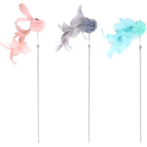 plastová palička s trblietkami s cinkajúcimi rolničkami, korálkami, hustými dlhými pierkami a brmbolcom obsahuje catnip (šantu mačaciu) zaháňa nudu, stimuluje poľovný inštinkt