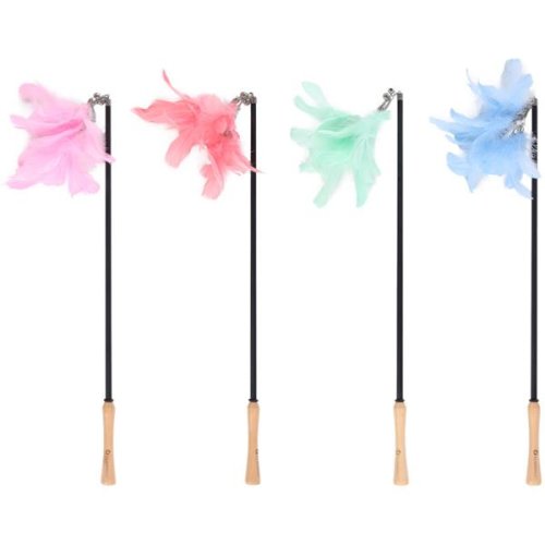 sklolaminátová palička s drevenou rukoväťou s cinkajúcimi rolničkami, retiazky a hustými pierkami zaháňa nudu, stimuluje poľovný inštinkt vymeniteľný/rozšíriteľný záves nastaviteľná dĺžka paličky