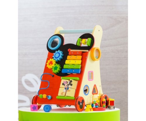 Krásne drevené multifunkčné chodítko s motívom Mickey Mouse. Najlepší darček pre deti, ktoré sa práve učia chodiť . Chodítko dieťa tlačí pred sebou a má v ňom o poru pri získavaní stability a udržiavaní rovnováhy . A keď sa nožičky unavia, je čas sa ísť hrať. Toto krásne chodítko od Disney obsahuje mnoho krásnych farebných prvkov s obľúbenými postavičkami a zabaví deti na dlhé hodiny. Navyše je všetko vyrobené z kvalitného dreva. Chodítko je ideálny darček pre prvé krôčiky aj skvelú zábavu.