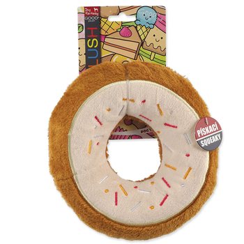 Hračka z jemného plyšu, ktorý je príjemný na dotyk a dobre padne do psej papule . Pri stlačení hračka píska . Lákavý donut, ktorý bez obáv môžete svojmu psovi dopriať.