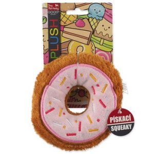 Hračka z jemného plyšu, ktorý je príjemný na dotyk a dobre padne do psej papule . Pri stlačení hračka píska . Lákavý donut, ktorý bez obáv môžete svojmu psovi dopriať.