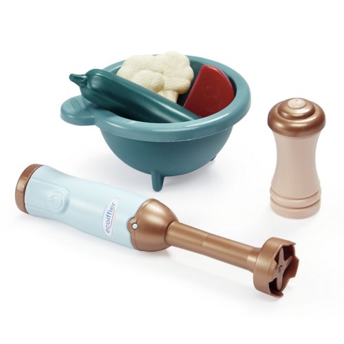 Súprava na prípravu polievky od značky Ecoiffier poteší každého malého kuchára. Obsahuje tyčový mixér, kuchynské náčinie a makety zeleniny na realistickú hru na varenie.