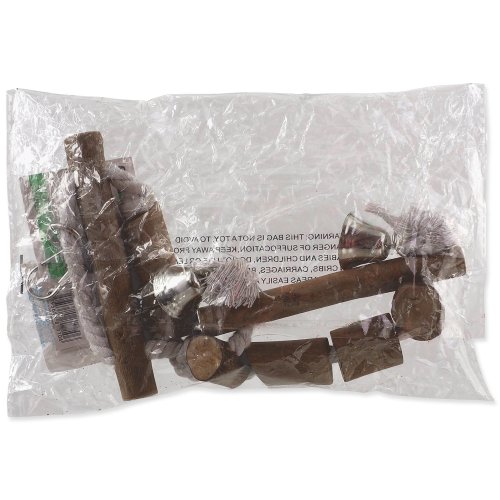 Závesná drevená hojdačka s lanom vhodná pre stredné exotické vtáctvo.