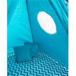 Krásne modré teepee je vyrobené z tých najkvalitnejších materiálov. Celý plášť stanu, podlaha aj poťah vankúšikov sú vyrobené z prémiovej bavlny, ktorá je hypoalergénna a dokonale priedušná. Montážne tyče sú vyrobené z prírodného svetlého dreva.