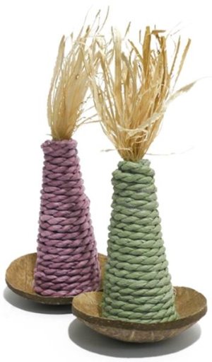 Hračka na zahnanie nudy pre drobné cicavce podporujúce hlodanie. Kužeľ na kokosovom podnose. Vyrobené z prírodných materiálov. 1 kužeľ, priemer podnosu 9cm, výška kužeľa bez strapce 11cm.
