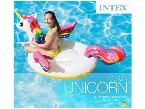 Užite si letné vodné radovánky s nafukovacou hračkou Intex jednorožec s rozmermi 198 × 140 × 102 cm, ktorá zaujme rozprávkovým dizajnom a pohodlným sedením pre jedno dieťa. Vďaka pevným držadlám a stabilnej konštrukcii si deti užijú bezpečnú zábavu v bazéne aj na kúpalisku.