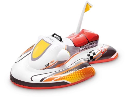 Krásny nafukovací skúter značky Intex je skvelý na spestrenie vodných radovánok. Vďaka svojmu dizajnu má skvelú stabilitu vo vode a na komfortné použitie je ideálne umiestené pevné držadlo . Skúter je vyrobený z vopred testovaného masívneho vinylu s hrúbkou 0,25 mm . Výrobok používajte iba vo vode a je určený pre deti od 3 rokov vždy pod dozorom dospelej osoby.