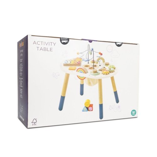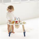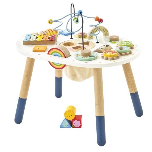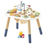 Tento fantastický aktívny stolík nadchne všetky zmysly dieťaťa. Je perfektný pre batoľatá, rozvíja ich predstavivosť . Je plný multisenzorických aktivít , ktoré zapoja zvedavé mysle detí. Môžu preskúmať korálkovú dráhu, vkladačku, xylofón, hrkálku, ozubené kolieska a ďalšie . S toľkými vecami, ktoré môžu objavovať sa zabaví na dlhé hodiny. Stabilný stolík vám vydrží naozaj dlho, je vyrobený z udržateľného dreva a dekorovaný pestrými a netoxickými farbami.