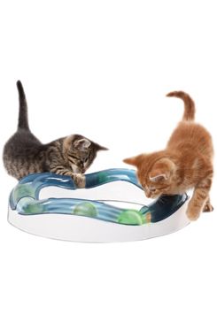 Zábavná dráha so svietiacim loptičkou, ktorú možno pospájať do rôznych tvarov. Horné diely dráhy sú z priehľadného plastu, takže mačka loptičku vidí, počuje a vďaka otvorom ho môže ľahko gúľať, nemôže ho však vybrať.