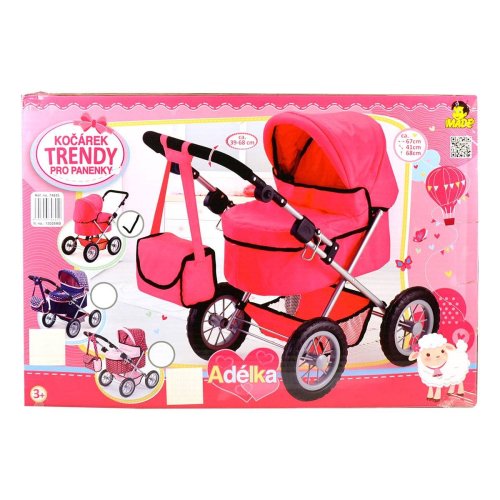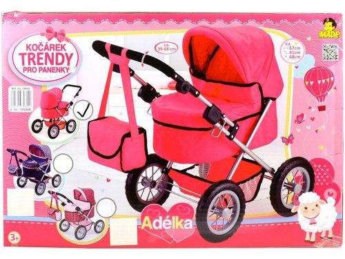 Kočík z kolekcie Adielka v modernom dizajne v ružovej farbe má nastaviteľnú rukoväť 39 - 68 cm a hlbokú korbu. Veľmi vkusne riešený stabilný kočík vhodný pre bábiku Adélku , ale aj ostatné bábiky do 42 cm alebo čokoľvek ďalšie, čo potrebuje malé dieťa previezť. Kočík môžete jednoducho zložiť, rozložiť a vydať sa na báječný výlet. Je vhodný pre deti od 3 rokov.