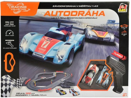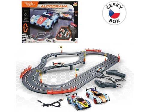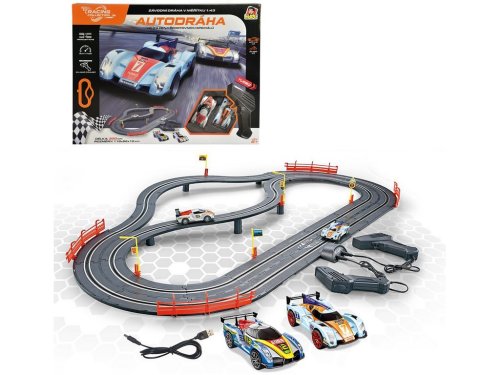 Autodráha Racing collection urobí radosť každému malému pretekárovi a nadšencovi do autíčok. Užije si rýchlu jazdu a pomocou ovládačov rýchlosti usporiada so svojimi súrodencami alebo kamarátmi preteky. Stačí zostaviť trať a vyraziť. Balenie obsahuje 2 závodné autá, 2 ovládače s USB káblom pre externé napájanie, most a ďalšie príslušenstvo . Celková dĺžka trate je 300 cm . Kto pôjde rýchlejšie, obíde koliesko ako prvé a vyhrá?