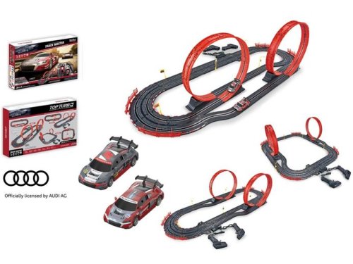 Oficiálne licencovaná autodráha MaDe prináša napínavé závodné zážitky do každej izby. Vďaka dĺžke 560 cm ľahko vytvoríte rôzne varianty trate, či už preferujete technické úseky alebo dlhé rovinky. Atraktívny vzhľad v štýle vozidiel AUDI a kvalitné spracovanie poteší malých aj veľkých fanúšikov automobilových závodov.